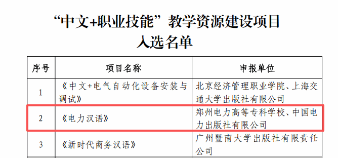 近日,教育部中外语言交流合作中心公布2025年度“中文+职业技能”教学资源建设项目入选名单,学校与中国电力出版社联合开发的《电力汉语》教材成功入选,标志着学校在“中文+职业教育”资源建设方面取得实质性突破。该教材于2023年11月正式出版,定位为面向国际中文教育中级水平的电力类专业汉语教材,涵盖15个专业主题,融合“电力知识、汉语技能、中国文化”三大维度,适配境外电力院校教学、中资企业海外员工培训及国内高校留学生培养等多类场景。